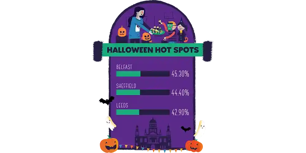 Find where you're most likely to discover sweet-success trick or treating, and which cities turn off their lights and pretend they aren't home.